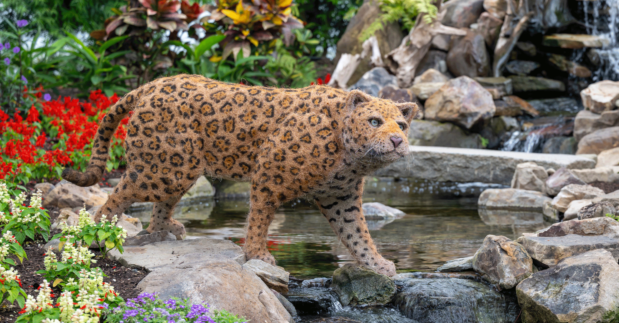 With help from The Pittsburgh Zoo and Aquarium, let’s learn about the actual creature that inspired our topiary creation! Did you know that the jaguar is the world’s third largest cat species after tigers and lions? Although jaguars and leopards look similar, jaguars are only found in the Americas, while leopards call Asia and Africa home. A jaguar’s spots are different, too, as they are rose shaped with a black spot in the middle. This spotted coat is ideal for camouflage in the rainforest, allowing the jaguar to blend in with the alternating light and dark patches of the jungle background.
