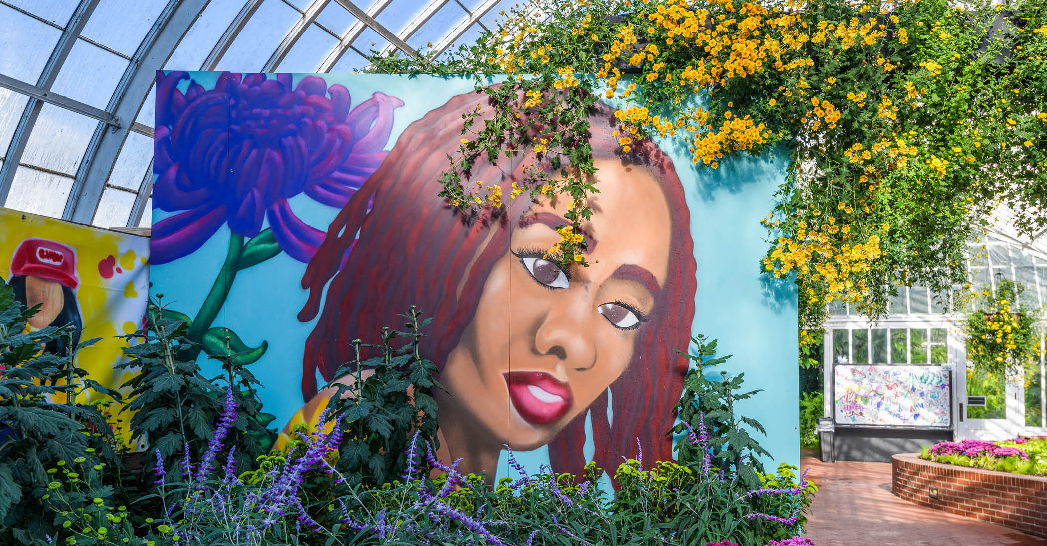 Every seasonal flower show, Phipps looks at ways it can collaborate with local organizations to create the best guest experience possible. When thinking about the desire to incorporate graffiti into the hip hop room, Phipps Marketing and Communications Manager Abby Krick suggested Rivers of Steel. Abby interned with them during college and had studied under their Sr. Director of Programs & Regional Partnerships, Chris McGinnis, so it was clear to her that they would be a perfect fit for this project!