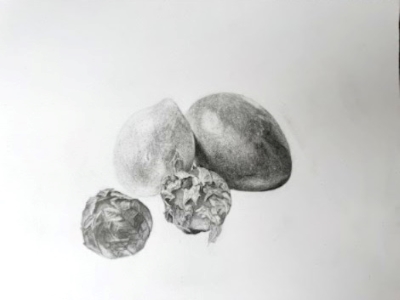 Objective: To be able to accurately draw three-dimensional shapes using line and tone, and employ geometric and aerial perspective in drawing botanical subjects.