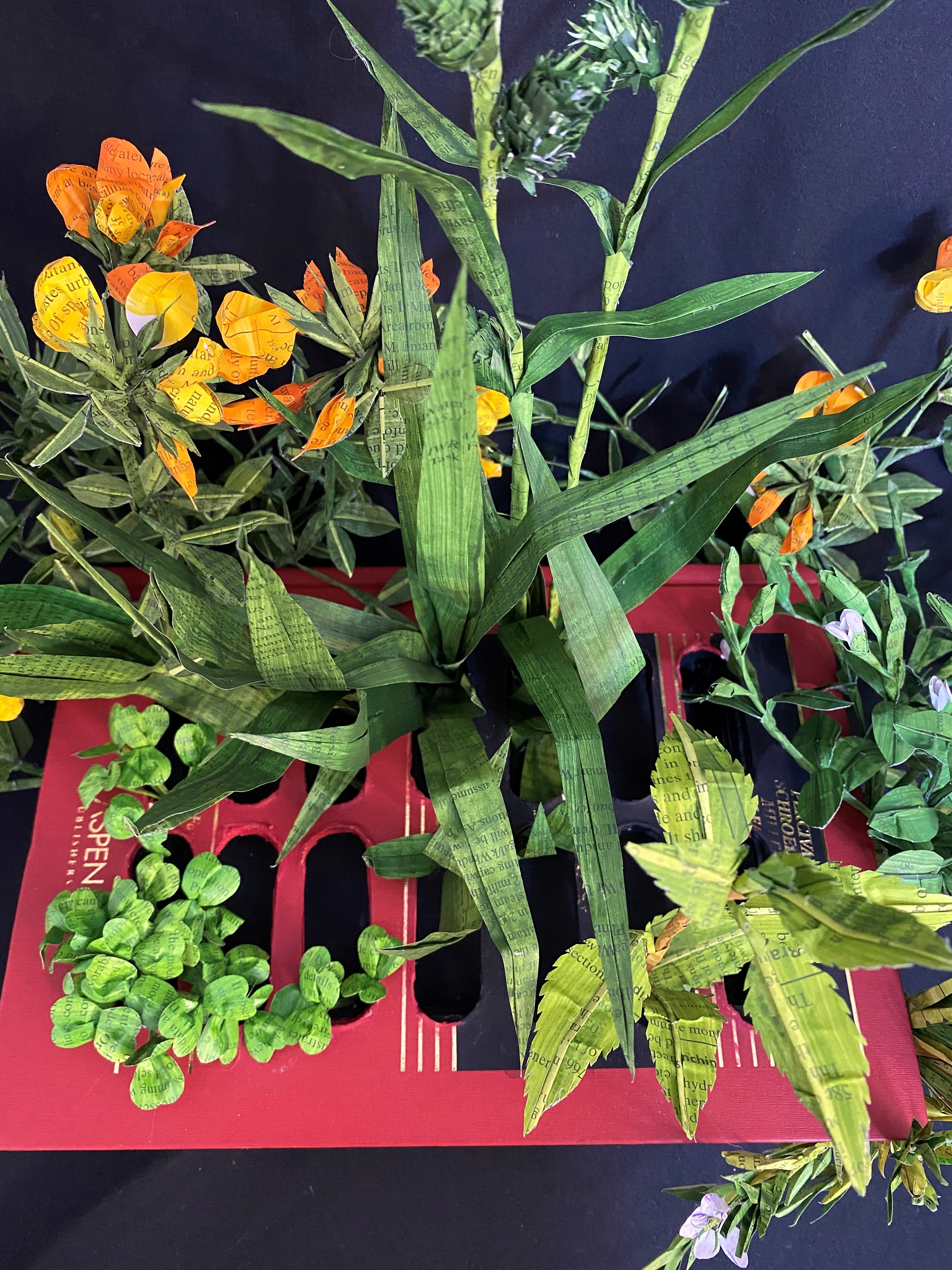 Experience a thought-provoking exhibit featuring BiblioBotany sculptures — created from upcycled books and their pages — by Lisa Meek.