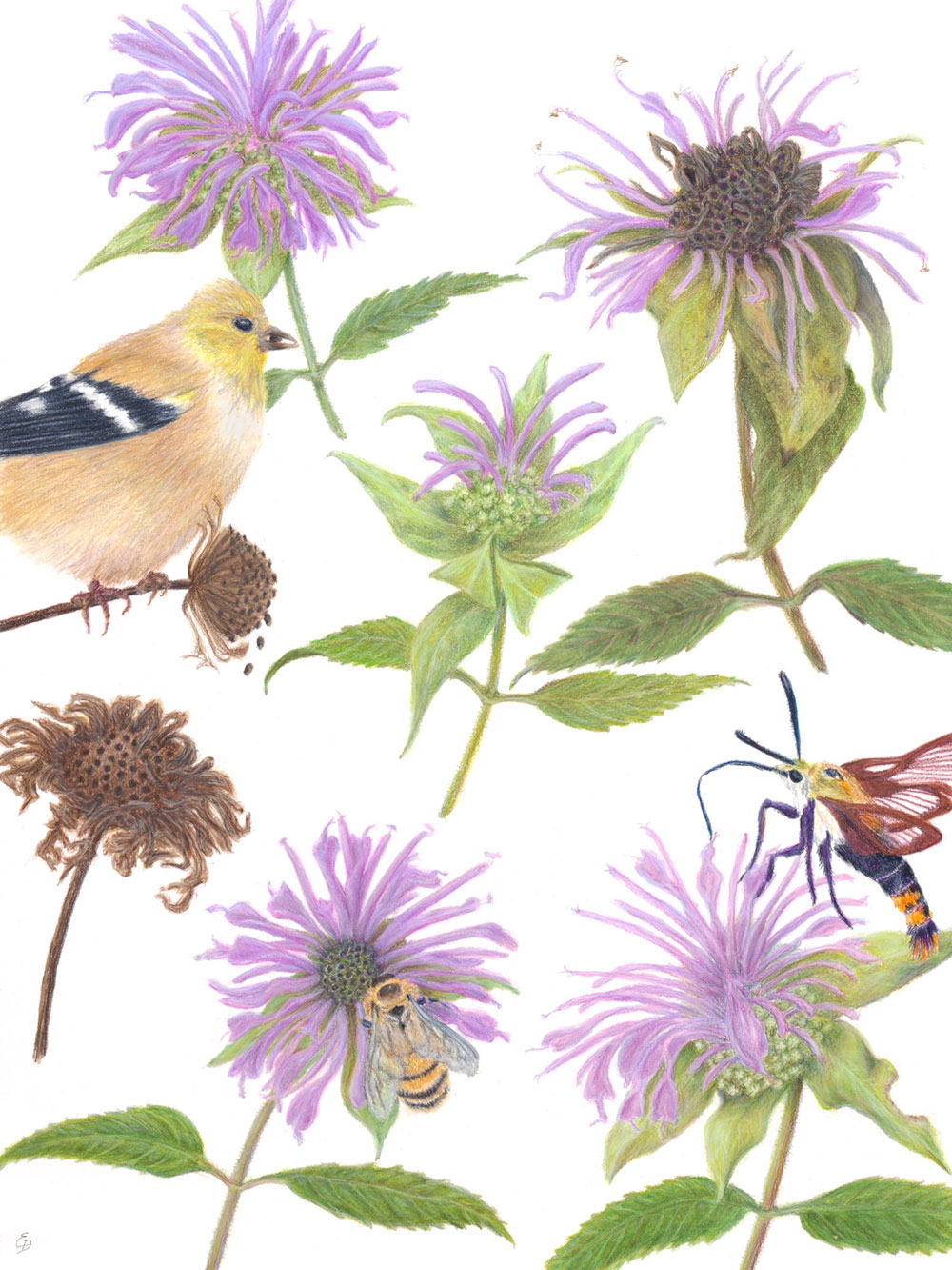 Wild Bergamot (Monarda fistulosa), watercolor and colored pencil, illustration by Betsy Doherty