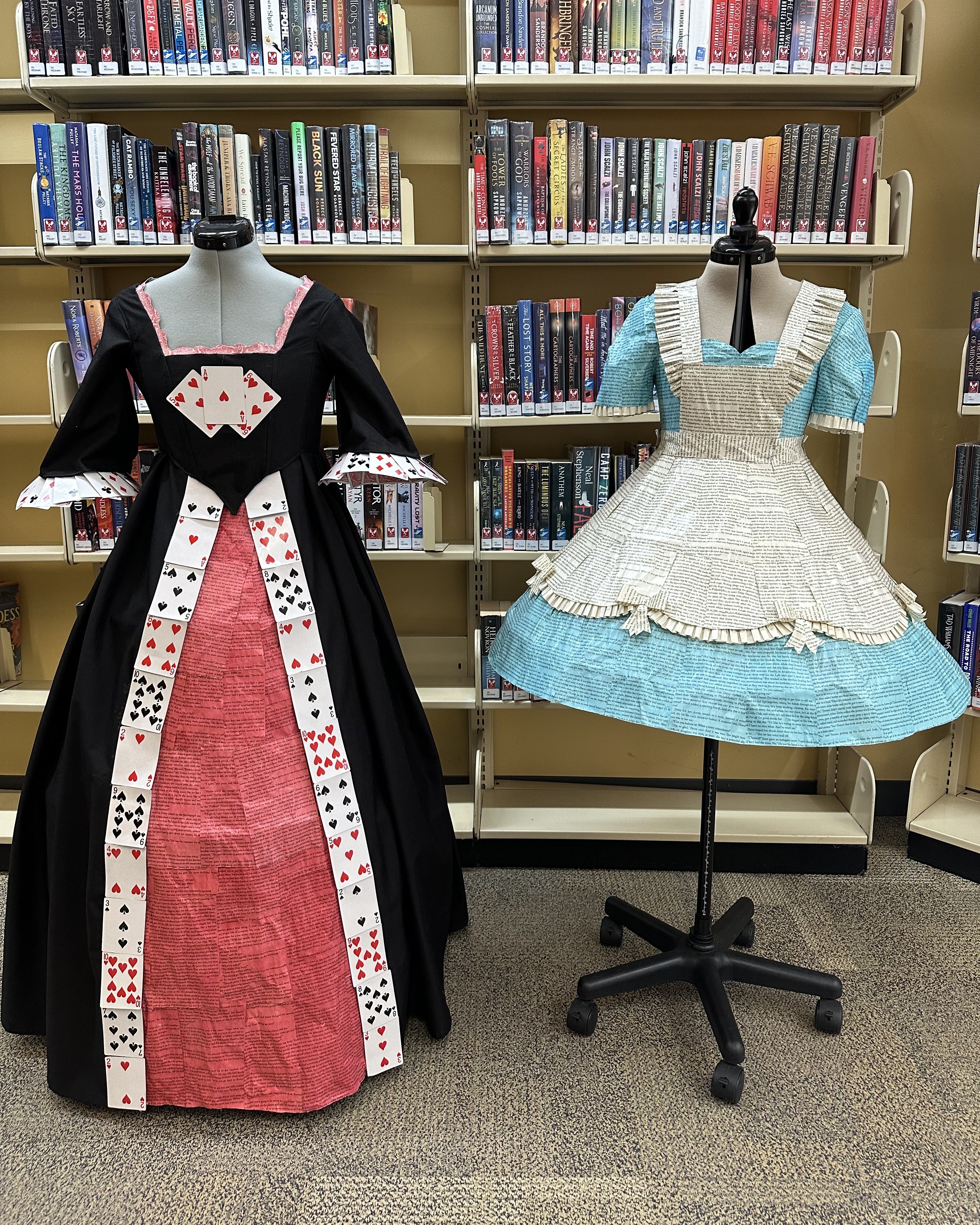 Sidney Rice, Alice Dress & Queen of Hearts Dress: Inspired by the whimsical world of Alice in Wonderland, Sidney recognized that one dress simply couldn't capture the magic of this tale. The “Alice Dress” draws from the gown worn by Alice in the film, while the “Queen of Hearts Dress” shows off the elegance of Victorian-era fashion. Both gowns showcase Sidney's commitment to sustainability. Sidney Rice's pieces combine sustainability and the memories from a timeless fairy tale!