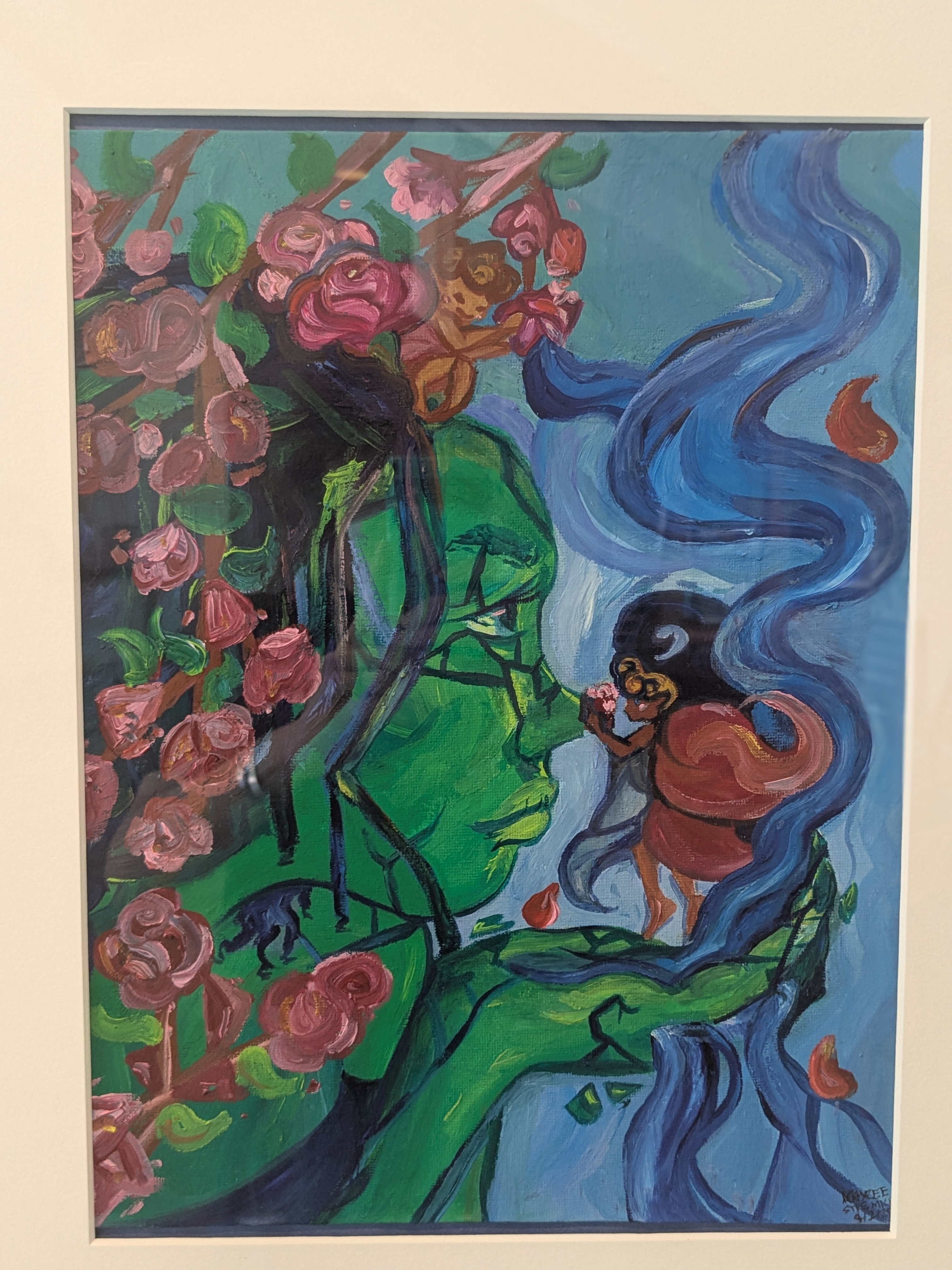 Kaycee F. Stiemke, Rosa: symbolizing growth and renewal, the piece reflects the journey from a place of disconnection to a vibrant new environment. Like spring breaking through winter, it highlights the beauty of nature, community, and the sustaining power of shared experiences.