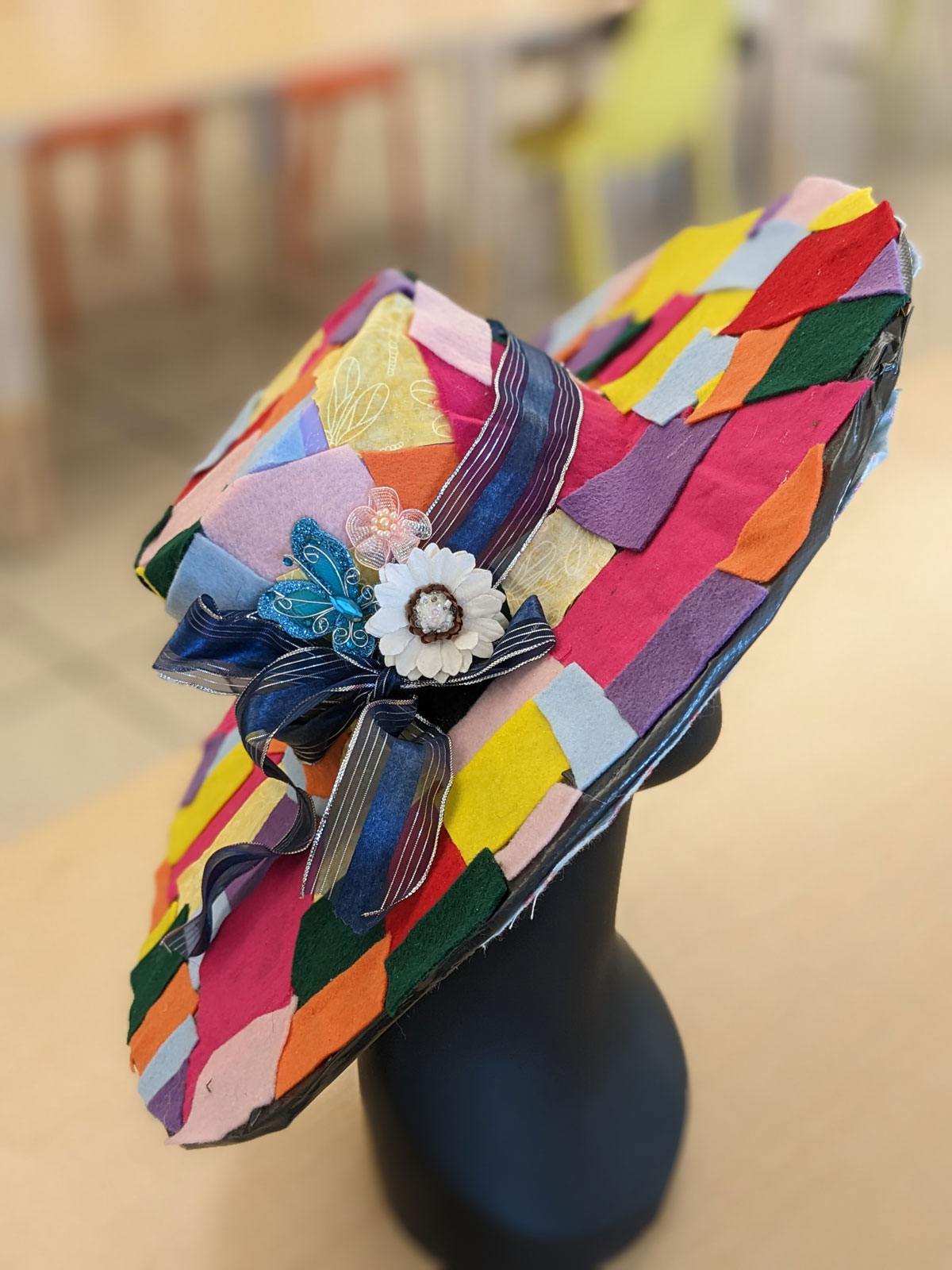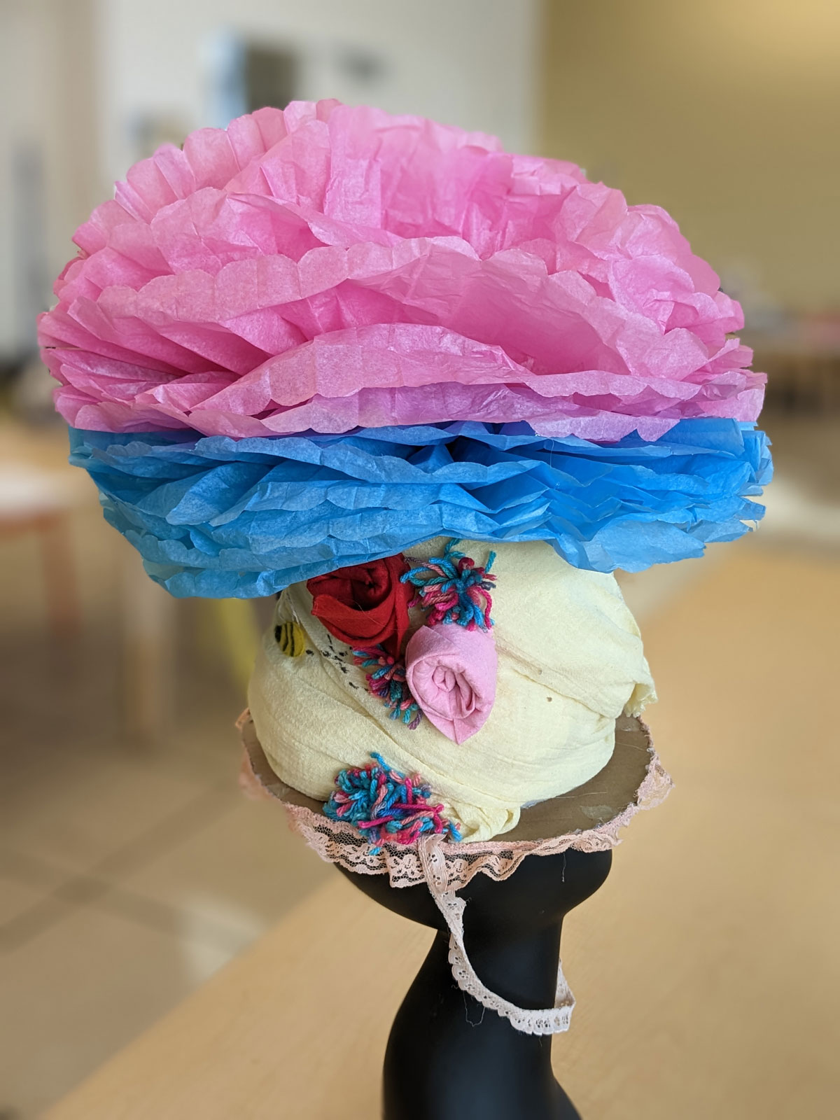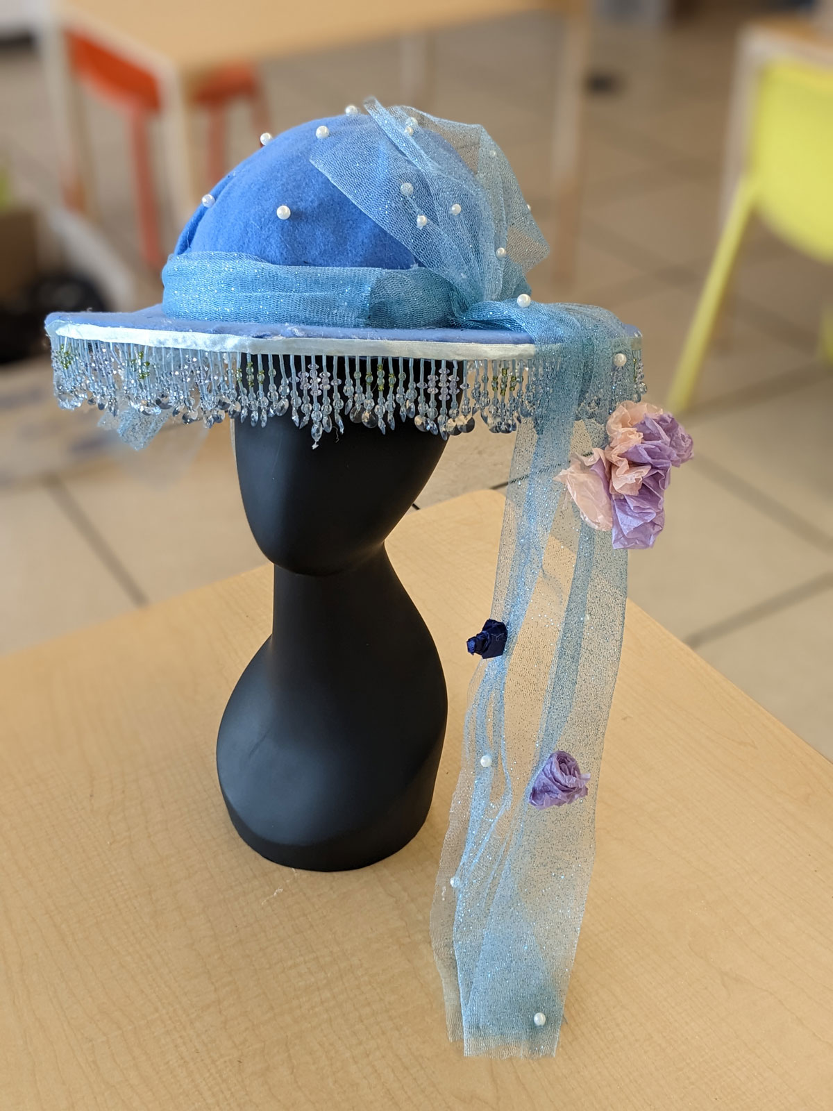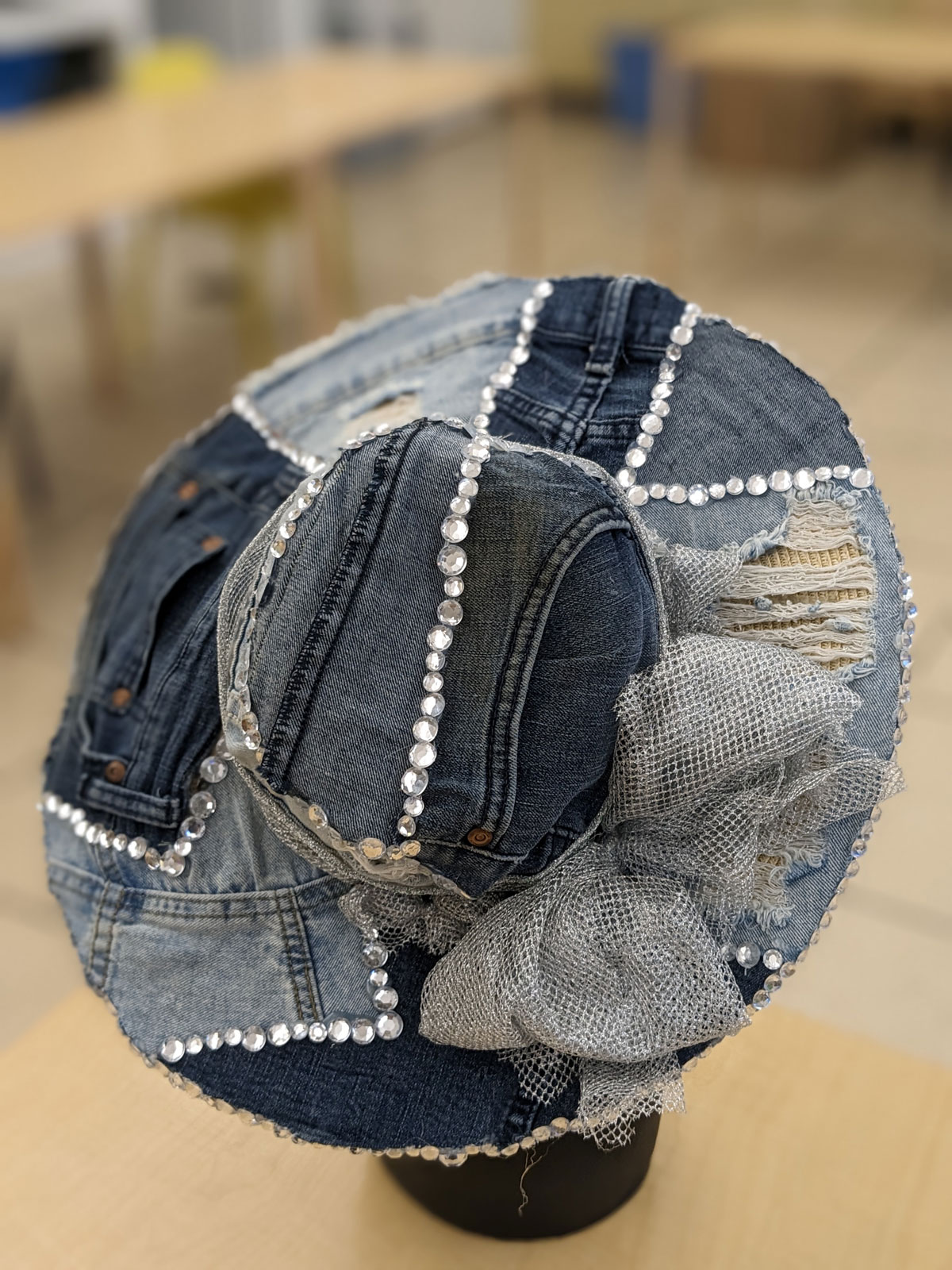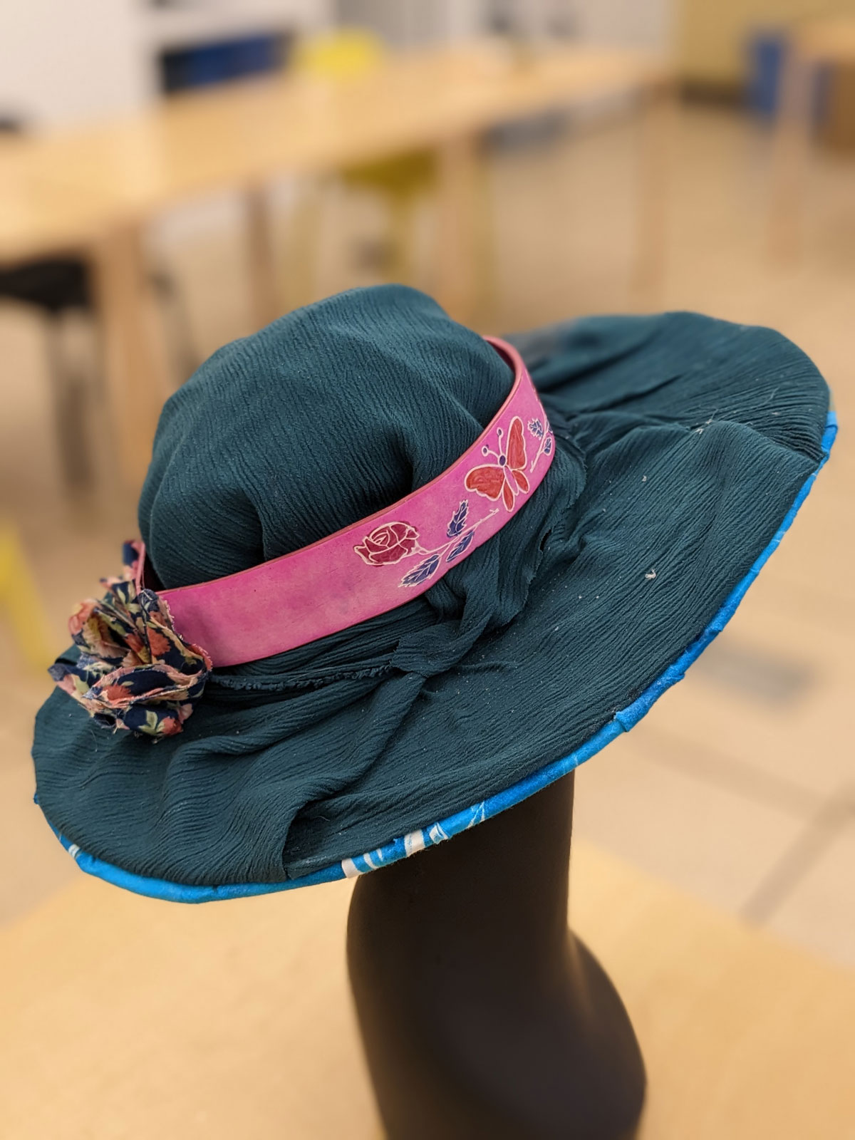 Hats have been used for protection from the elements, as well as expressions of fashion, identity, community and distinction for millennia. In recent years, the fashion industry has ballooned into what is called “fast fashion.” With clothing being produced and sold at low costs and styles changing frequently, consumers are persuaded to buy new items often, resulting in significant negative impacts to environmental and human health. Sustainable fashion such as thrifting and repurposing materials has become a popular way of combating the harmful effects of fast fashion while also creating beautiful, custom outfits that express your unique style.