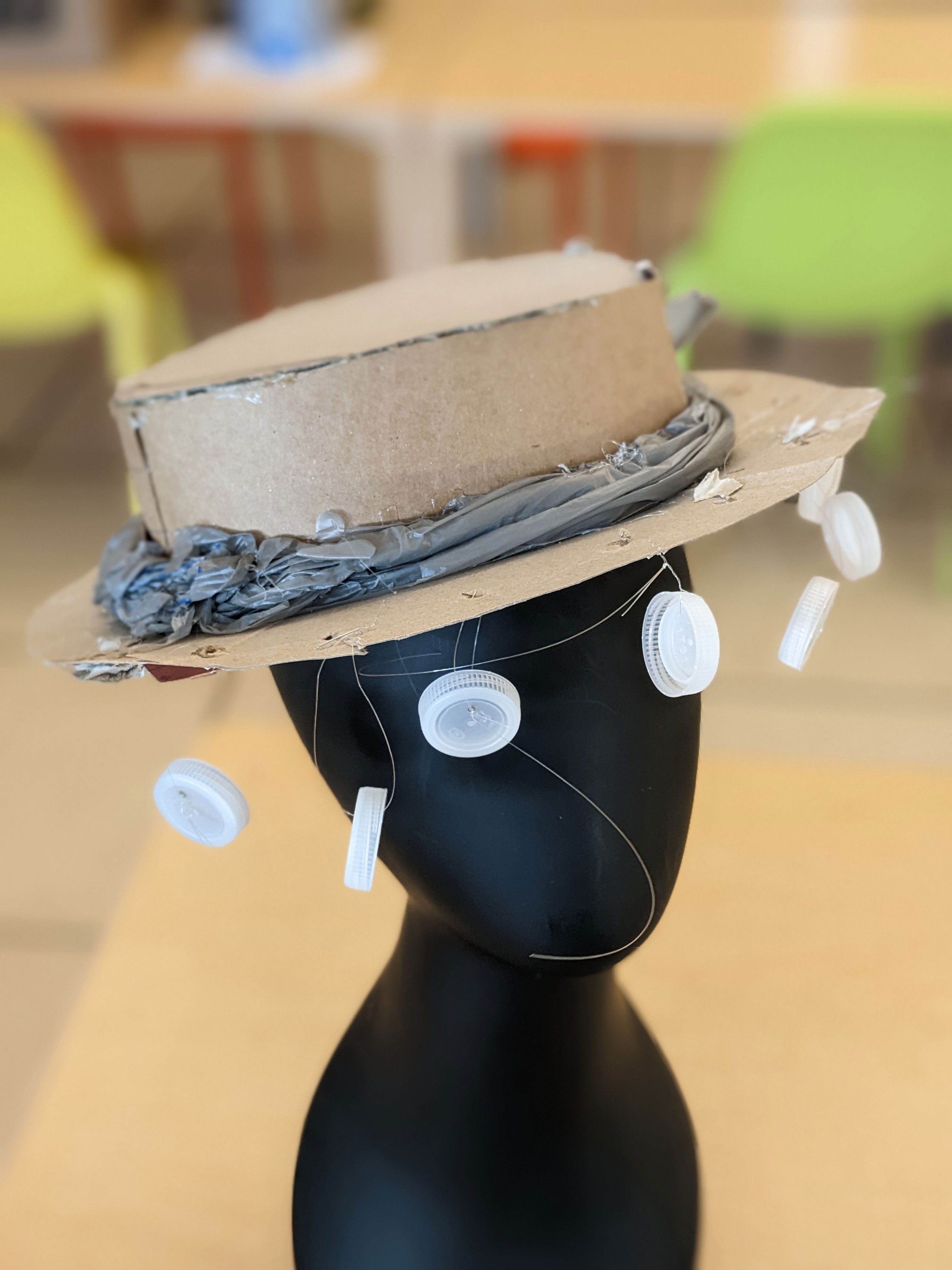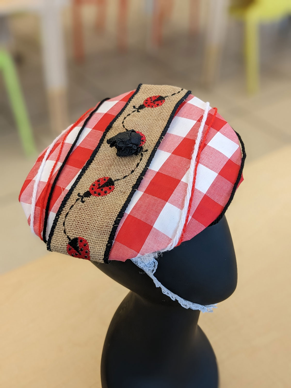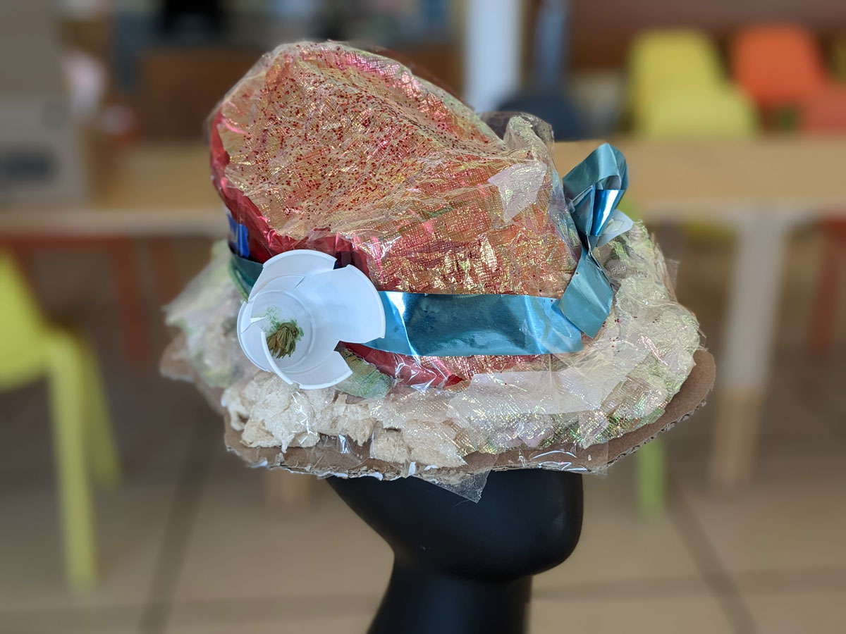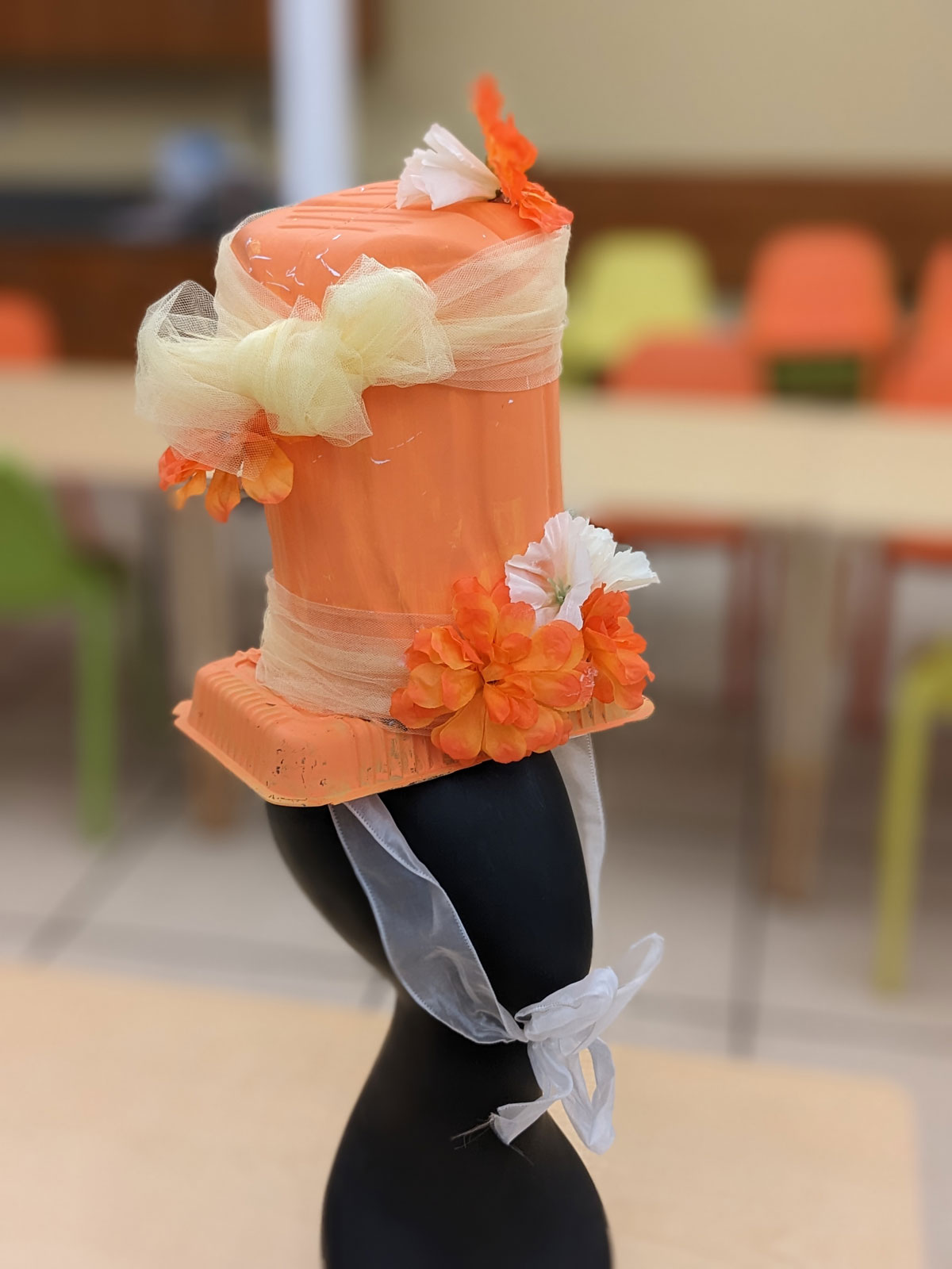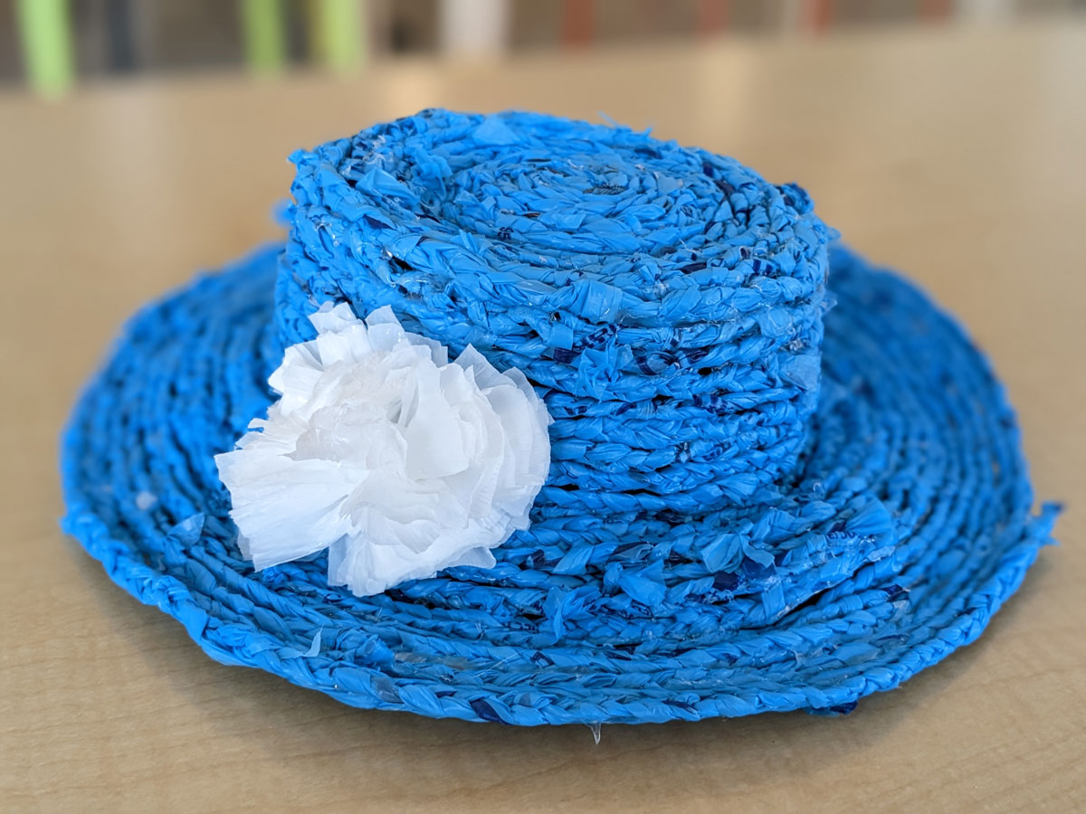 Hats have been used for protection from the elements, as well as expressions of fashion, identity, community and distinction for millennia. In recent years, the fashion industry has ballooned into what is called “fast fashion.” With clothing being produced and sold at low costs and styles changing frequently, consumers are persuaded to buy new items often, resulting in significant negative impacts to environmental and human health. Sustainable fashion such as thrifting and repurposing materials has become a popular way of combating the harmful effects of fast fashion while also creating beautiful, custom outfits that express your unique style.