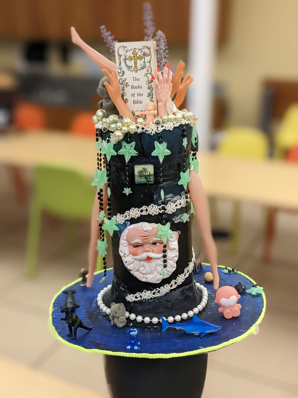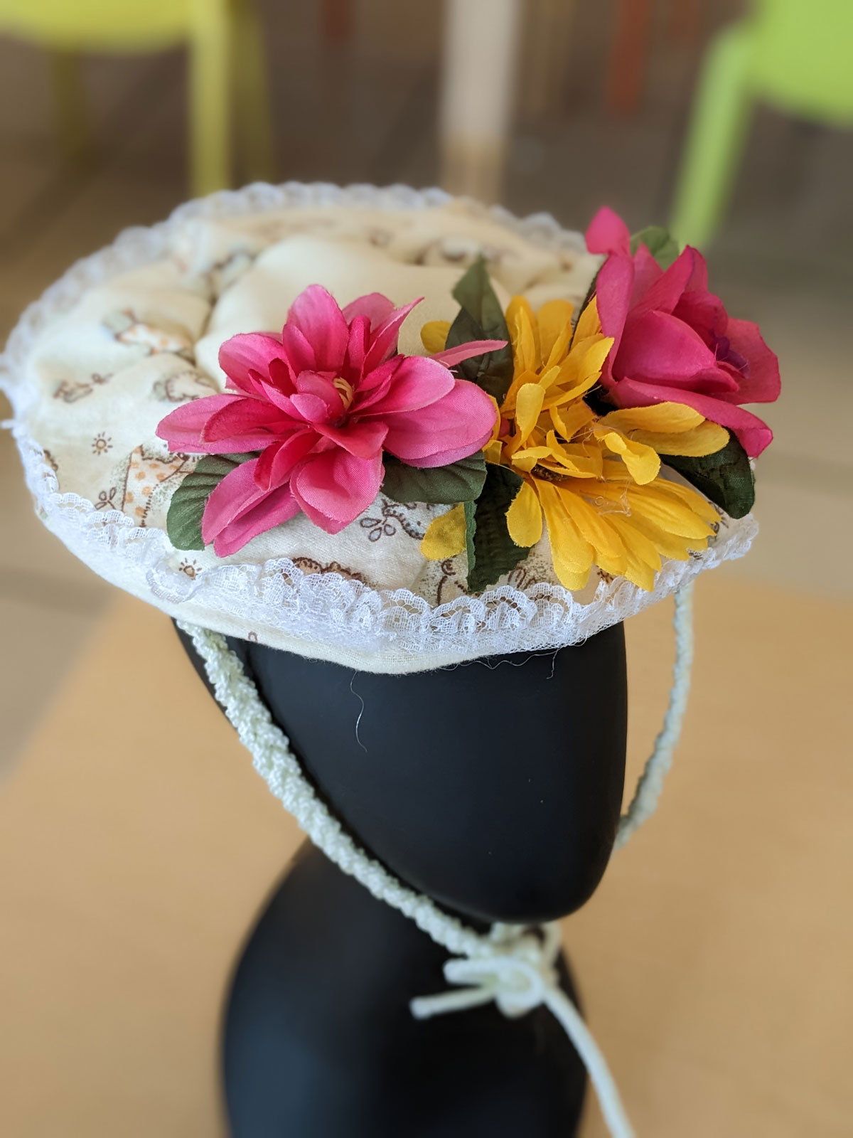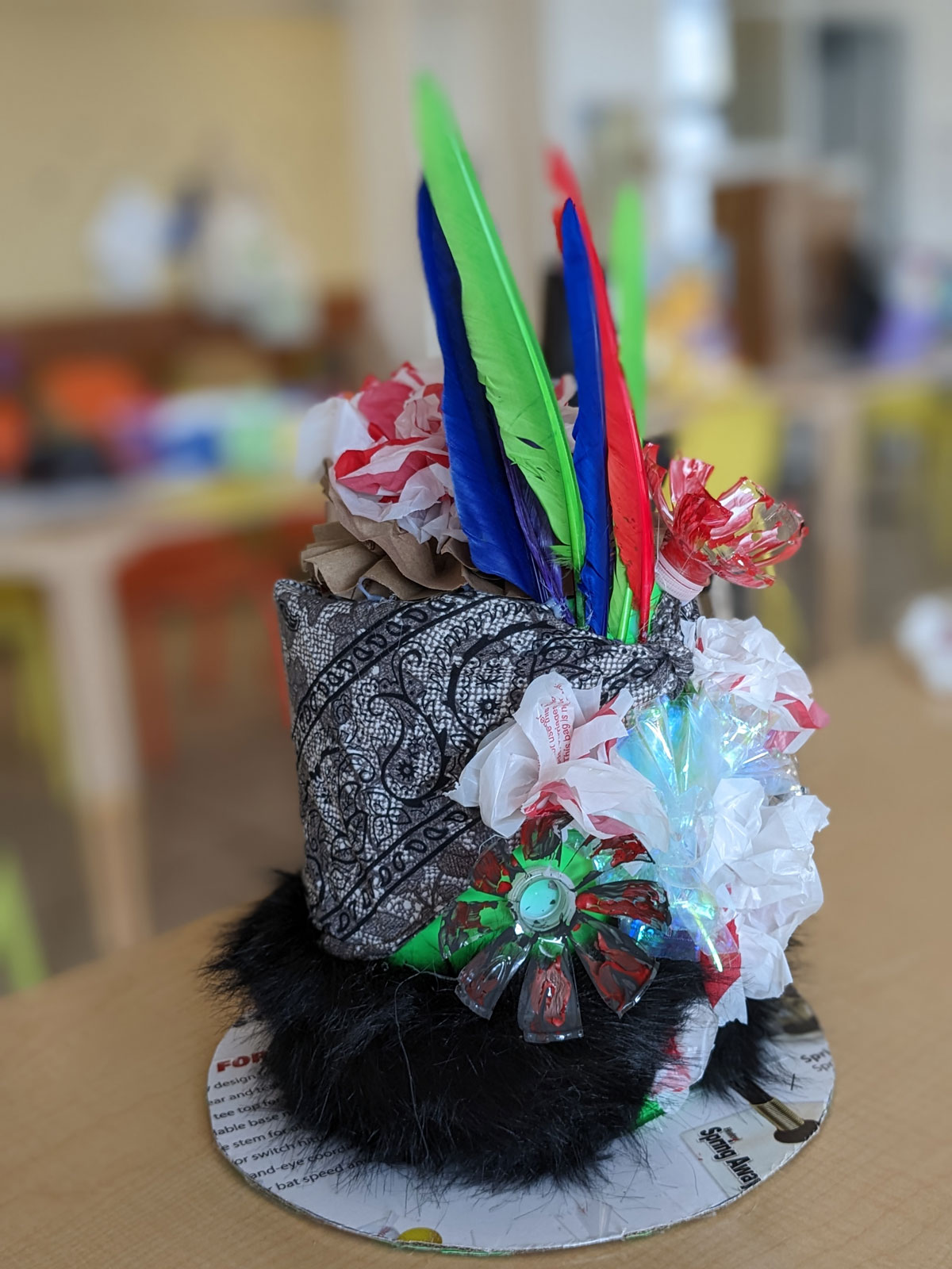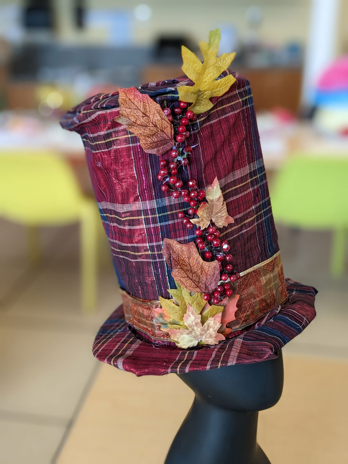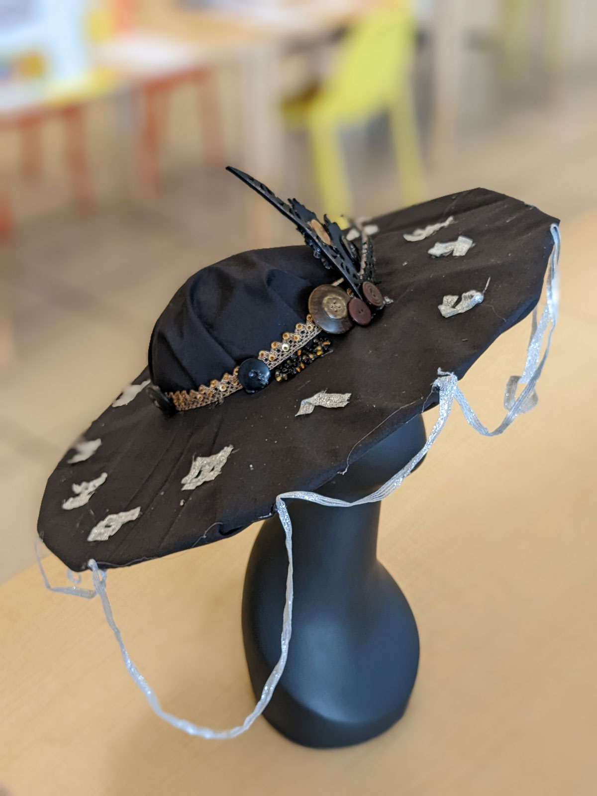 Hats have been used for protection from the elements, as well as expressions of fashion, identity, community and distinction for millennia. In recent years, the fashion industry has ballooned into what is called “fast fashion.” With clothing being produced and sold at low costs and styles changing frequently, consumers are persuaded to buy new items often, resulting in significant negative impacts to environmental and human health. Sustainable fashion such as thrifting and repurposing materials has become a popular way of combating the harmful effects of fast fashion while also creating beautiful, custom outfits that express your unique style.