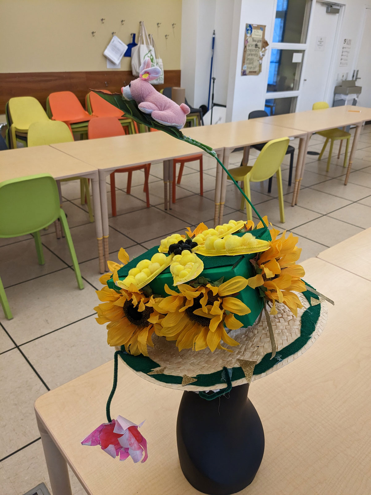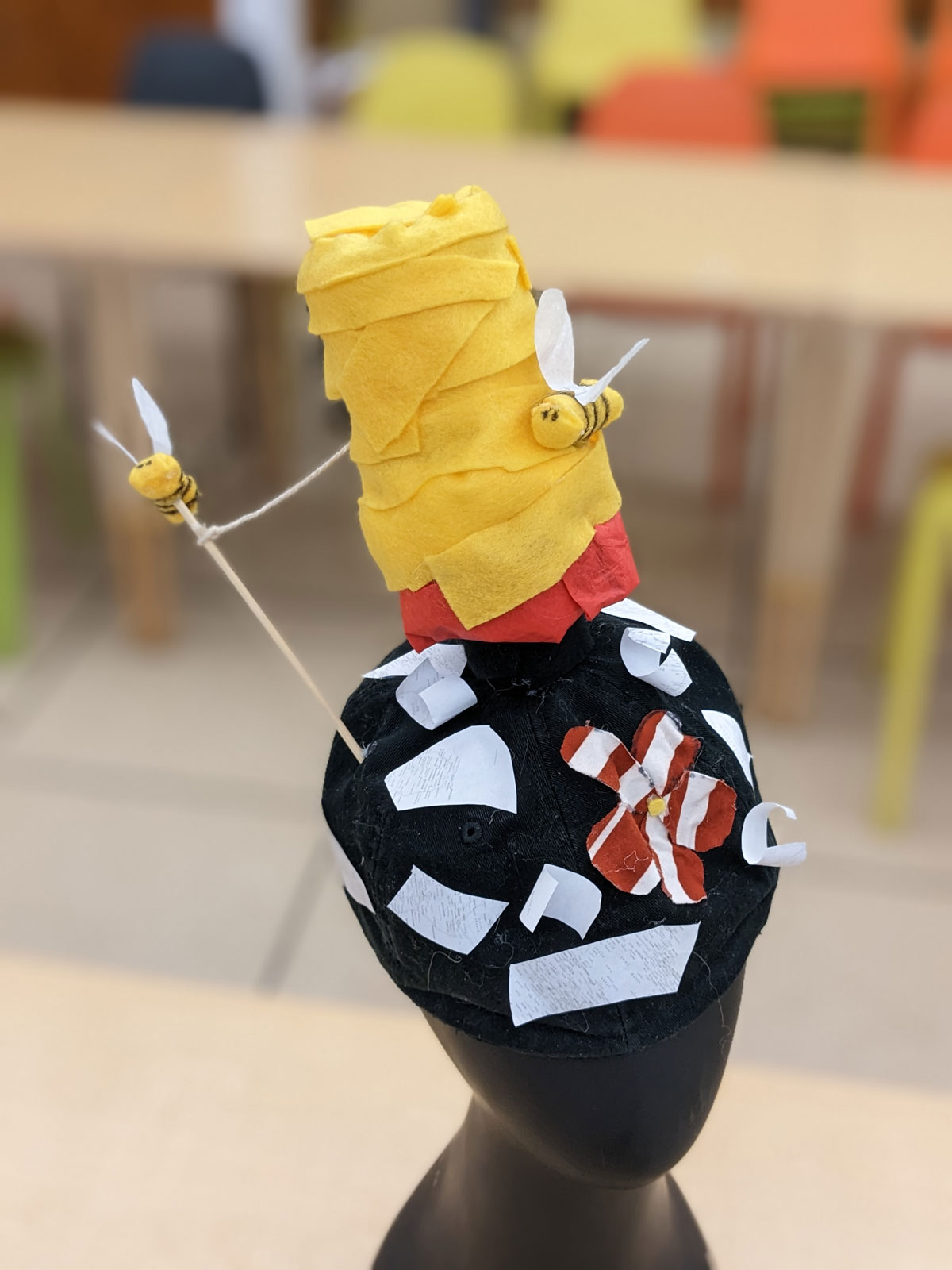 "The inspiration for my hat is my love for pollinators, flowers, and the environment."