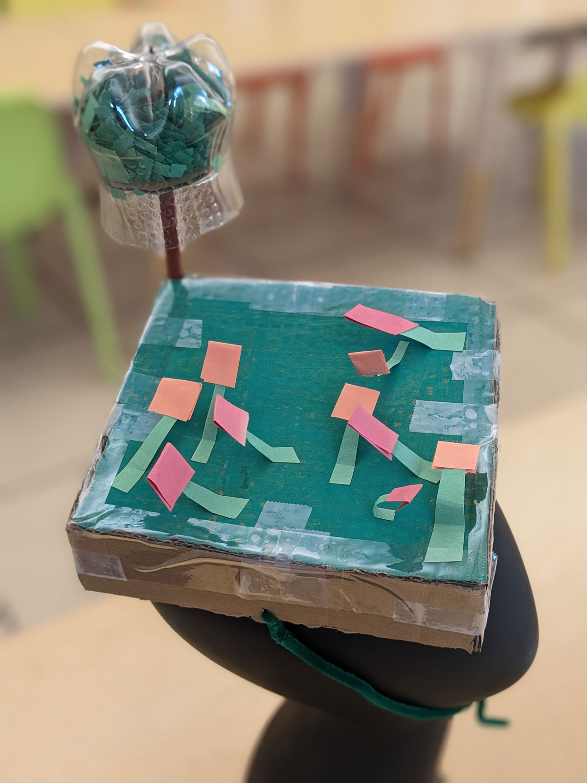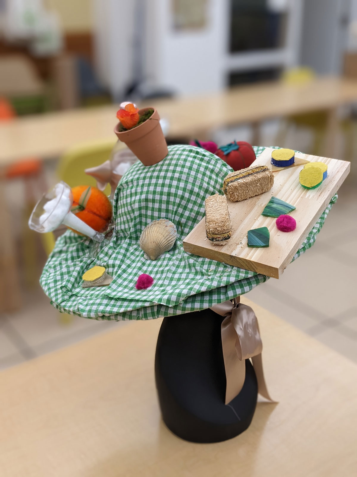 "We were inspired by mushrooms in nature. We loved how unique each mushroom was and how pretty they were, so we decided to make that the theme of our hat."