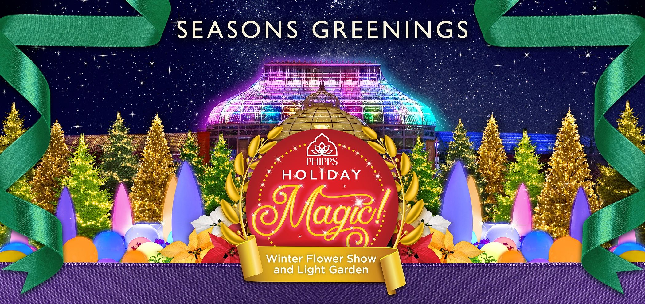 Pittsburgh, PA — Pittsburgh’s holiday experience is back and brighter than ever at Phipps Conservatory and Botanical Gardens’ Holiday Magic! Winter Flower Show and Light Garden, opening Fri., Nov. 17. With a charming theme of "Season’s Greenings," this year's show is sure to captivate guests with wonderful winter themes and lovely lights throughout. Phipps has pulled out all the stops for this year's Winter Flower Show with magnificent new displays featuring holiday trees adorned in jewel tones, exquisitely detailed props and our signature floral delights, including amaryllis, orchids and 21 varieties of poinsettias. Plus, the beauty isn't just indoors, our celebrated Winter Light Garden fills our Outdoor and Discovery Gardens with spectacular lights in vivid shades that will awe guests of all ages.