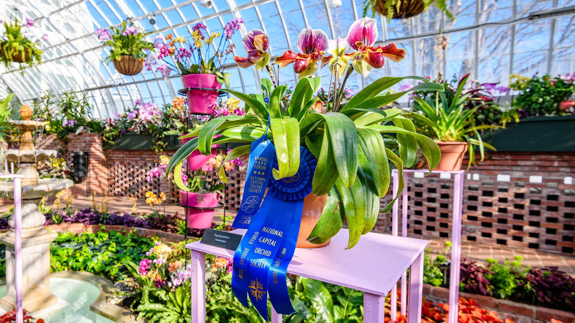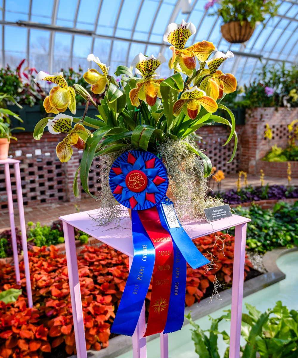 Washington, DC – On Jan. 31, Phipps Conservatory and Botanical Gardens was honored at the National Capital Orchid Society’s 46th Annual Paphiopedilum Forum with accolades across various categories. One of the oldest annual events in the United States devoted entirely to slipper orchids, the Forum is an official judging event of the American Orchid Society, a globally recognized, prestigious honor granted to superior quality orchids, exhibitors, and conservationists, signifying excellence in breeding, culture, and research.