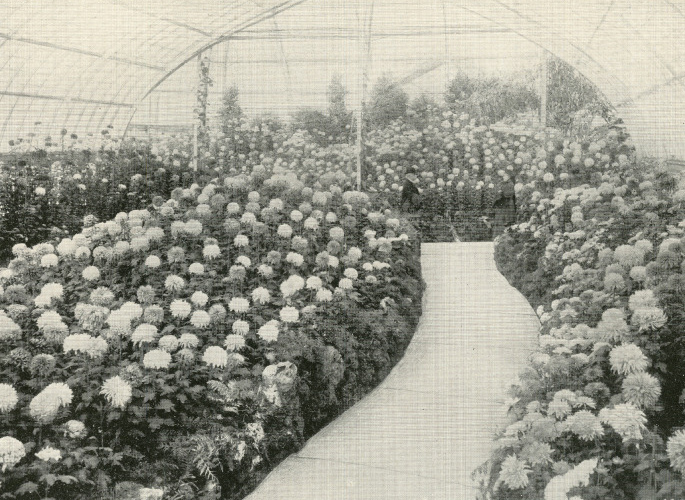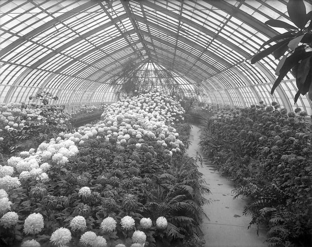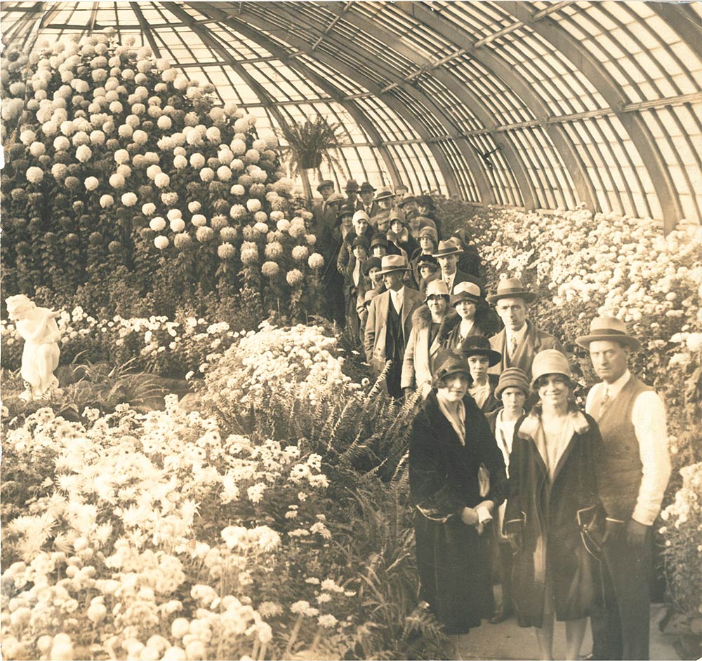 Phipps continued to grow, expanding its exotic plants collection with the March 1908 donation of camellia bulbs from West Central Africa by Ida Vera Simonton. These bulbs bloomed in May 1908, displaying flowers “similar to the amaryllis” and named “jungle lilies.”18,19 Its long-standing reputation for producing stunning chrysanthemum blooms had now begun to attract guests from all corners of the world; in November of 1909, a party of 58 Japanese industrial commissioners touring the United States traveled to Phipps to view the Fall Flower Show and compare with their native Japanese blooms.20