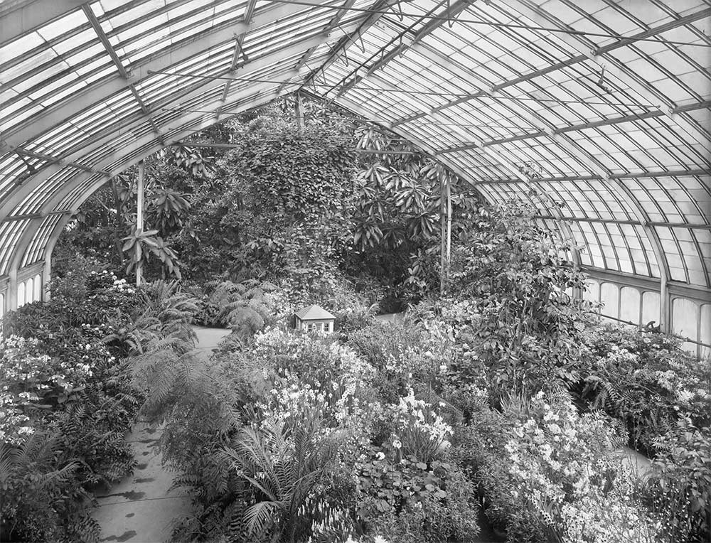 The iconic Victorian-style glasshouse was designed by New York-based greenhouse manufacturer Lord & Burnham for a fee of $100,000 and was completed in August 1893, one year after construction began. It featured nine display rooms and waist-high benches for austere potted plant exhibits.