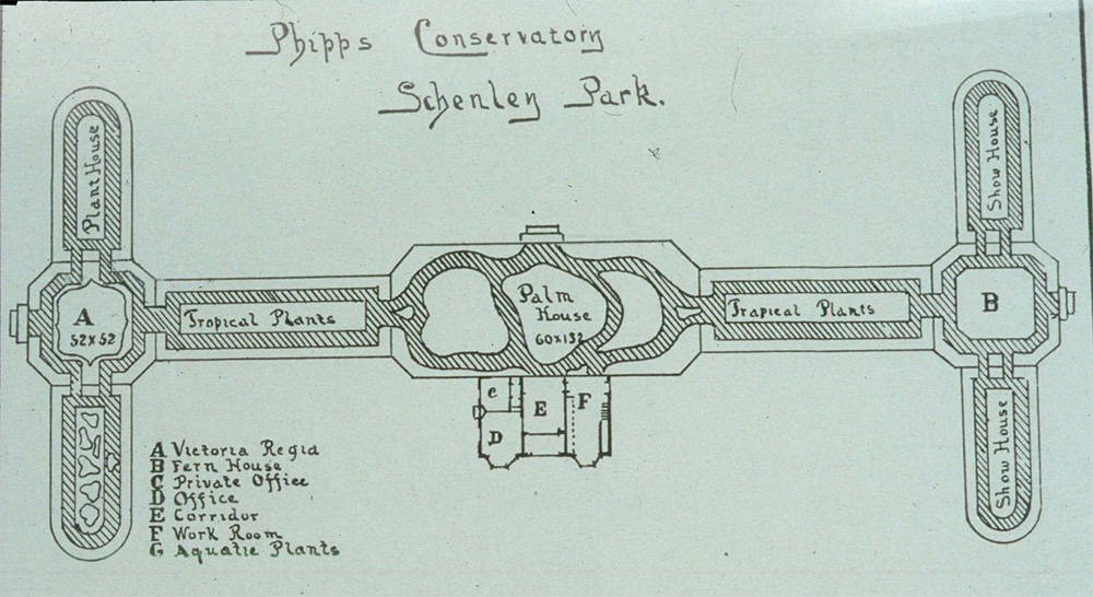 Falconer held this position for seven years, until 1903. His acquisitions of exotic plants drew guests numbering in the tens of thousands on Sundays, with weekdays seeing “one long stream of visitors from opening until closing time.” Guests viewed 60 varieties of palms, 100 types of ferns and 200 types of cacti among the total of over 10,000 plants at Phipps.9 Falconer’s intensive collection work led to Phipps being one of the only botanical gardens in the world at the time to host a collection of Jamaican tree ferns.10