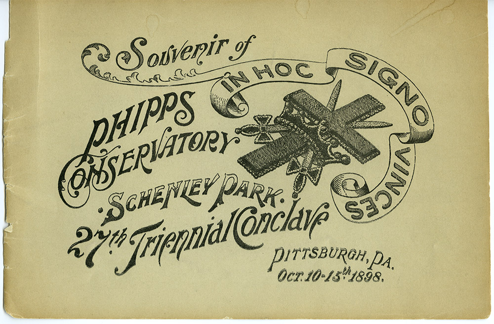 In October 1898, the 27th Triennial Conclave of the Knights Templar was held in Pittsburgh. Horticulture staff decorated the Conservatory with flowerbeds designed as Masonic emblems for the Conclave’s visit on Oct. 13 as throngs of visitors toured the city by trolley throughout the day.11