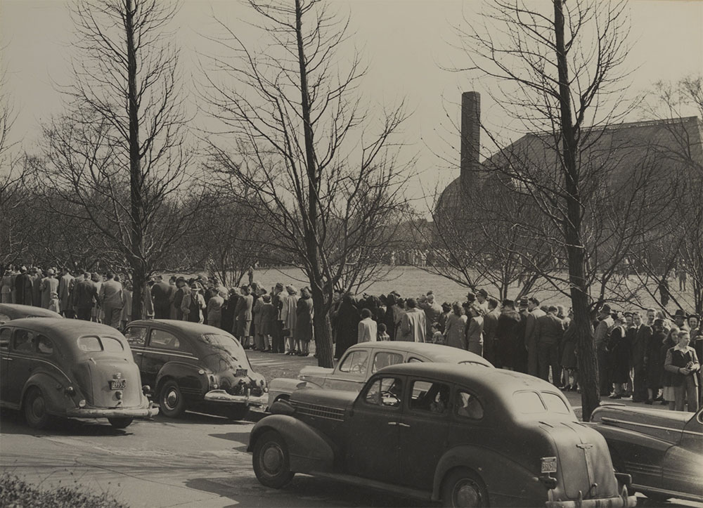 In another instance of “hybridization,” Phipps initiated collaborations with multiple Pittsburgh institutions, joining forces with the Pittsburgh Horticultural Society and the City of Pittsburgh. This partnership proved a boon to the Conservatory’s exhibits; attendance in 1941 exceeded 250,000 guests. Easter Sunday of 1942 set another record for Phipps after 16,000 guests flooded the glasshouses beginning at its 8 a.m. opening and lasting through the day. Guests packed into the Conservatory at so quick a pace that the cacti house was closed off due to becoming a traffic bottleneck.40